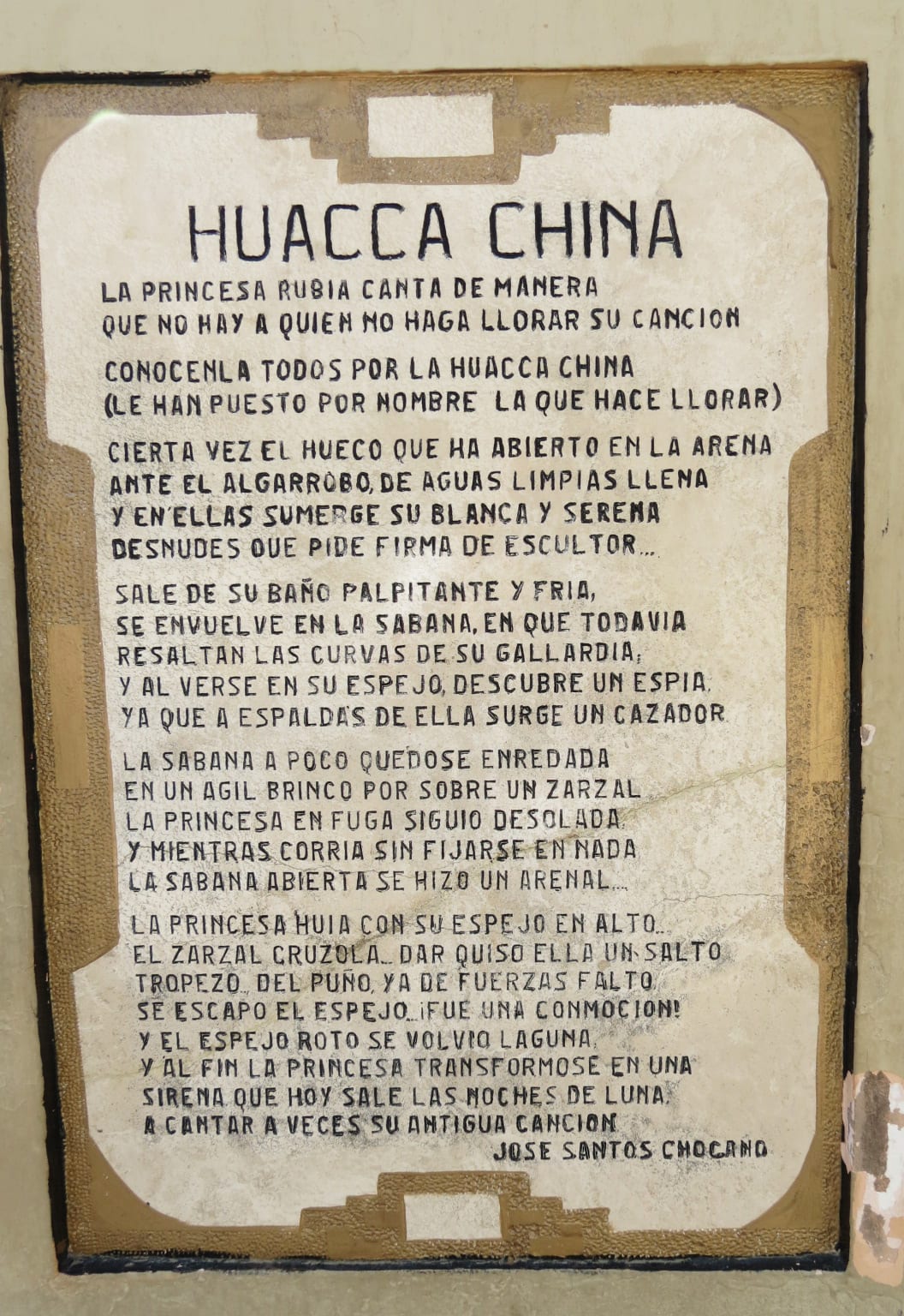 When she tried to walk out of the lagoon she realized her body had changed and was now a mermaid. The legend continues to say that once, every time there is a full moon the maiden can leave the lake and will continue to cry over her fallen warrior. The maiden’s name was Huaca China, which is Quechua (the language of the Incas) for “the crying woman”.